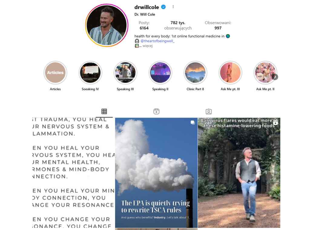 Dr Will Cole na swoim profilu na Instagramie szerzy wiedzę na temat medycyny funkcjonalnej, udostępniając informacje na temat diety i stylu życia.
