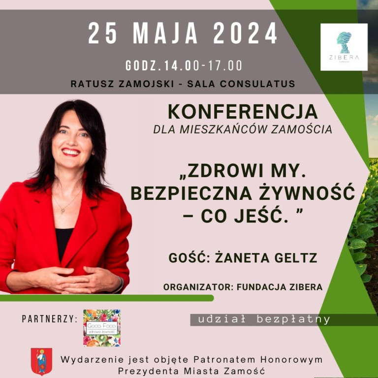 W sobotę, 25 maja 2024 r. Ratusz w Zamościu podjął w sali Consulatus autorkę książki „CO CI SZEPCZE BRZUCH?” Żanetę Geltz na zaproszenie Fundacji Zibera. Temat konferencji nie był wcześniej podejmowany (ZDROWI MY), zaproponowany przez mieszkankę Zamościa (założycielkę Fundacji Zibera) Jagodę Kupiec, a miał przybliżyć społeczności zamojskiej istotę bezpieczeństwa żywności. Udział w wydarzeniu był bezpłatny.