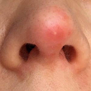 – suchość skóry, zaczerwienienie na skutek ataku paciorkowca